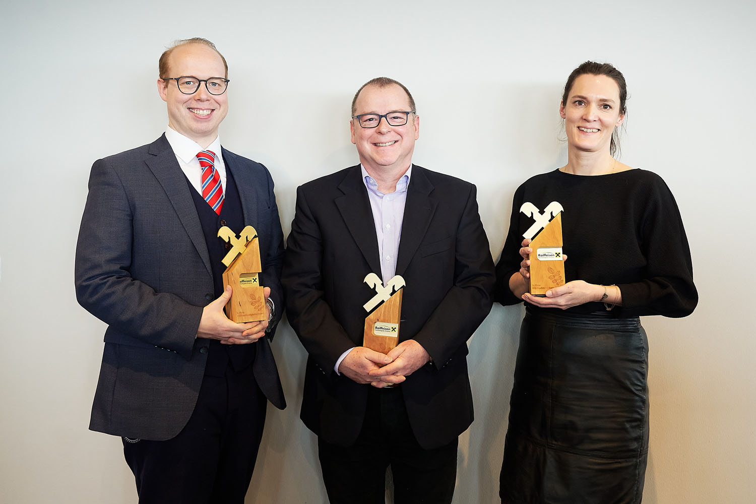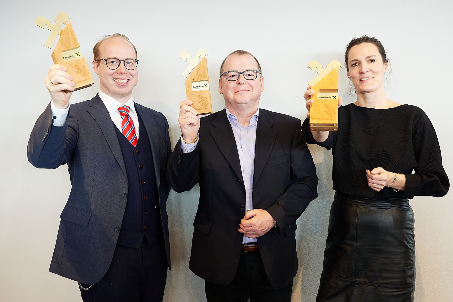 Johannes Rehulka, Vorsitzender der RNI, und Robert Pichler, Geschäftsführer der RNI, durften den Sieger:innen nicht nur den „Raiffeisen-Nachhaltigkeits-Award“, sondern auch Gutscheine