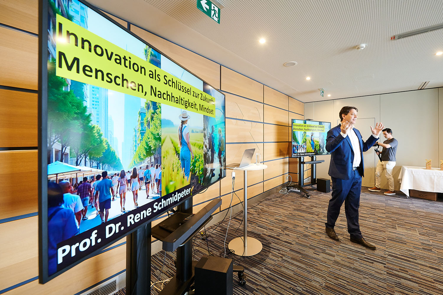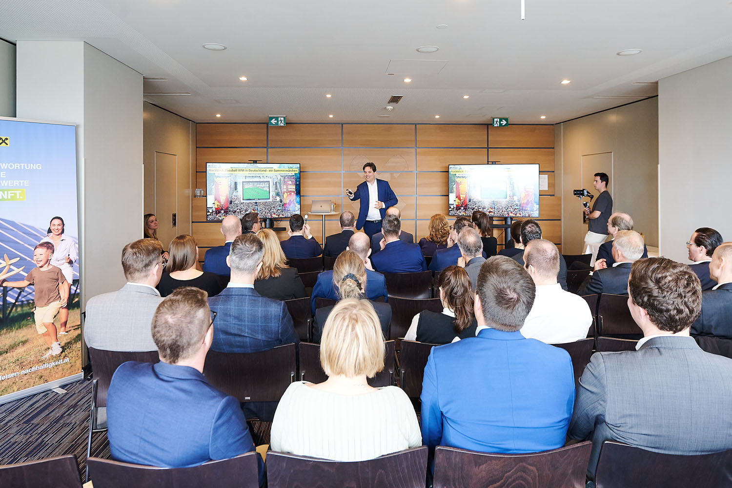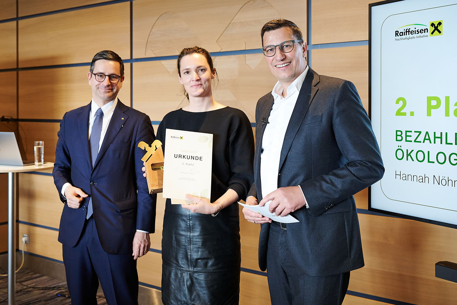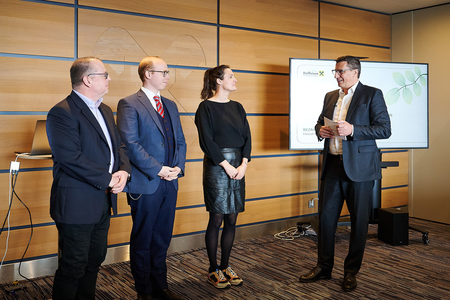 Nachhaltigkeits-Initiative gestartet. Ziel war es, den Mitarbeitenden eine Plattform zu bieten, auf der ihre nachhaltigen Ideen, Projekte und Initiativen sichtbar werden. Am 8. April 2025 wurden die besten Ideen im Raiffeisenhaus in Wien im Rahmen einer feierlichen Prämierung nicht nur vorgestellt, sondern auch auf die Bühne geholt. Eröffnet wurde die Veranstaltung durch Prof. Dr. Rene Schmidpeter mit einer sehr spannenden und interaktiven Keynote zum Thema „Nachhaltigkeit und Innovation als Wachstumstreiber“.